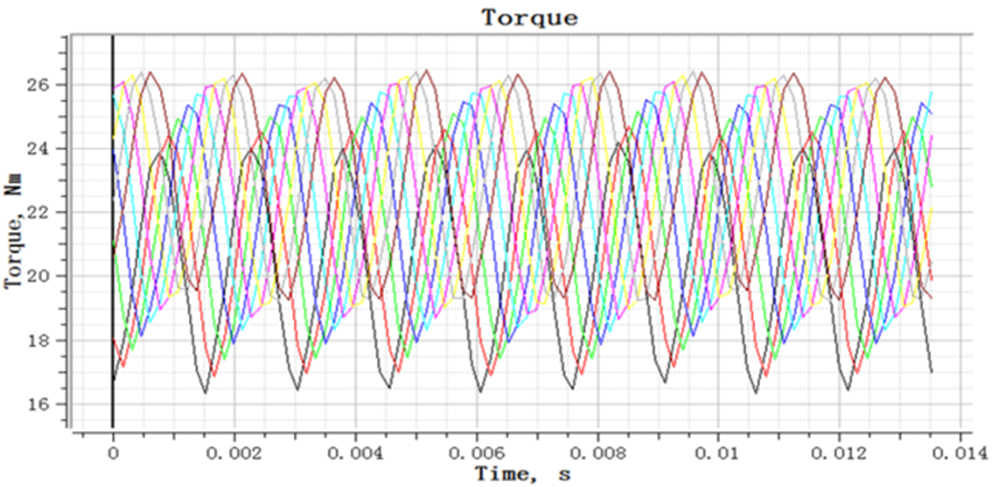 För att ge en bekväm körupplevelse, ägnar dragmaskinens design också särskild uppmärksamhet åt övertonsdämpning, särskilt undertryckandet och minskningen av övertoner av låg ordning (som har stor inverkan på komforten) och deras kraftvågsamplitud (Figur 8), såväl som minskningen av låghastighetsvridmomentrippel (Figur 9) och kuggvridmoment. Detta säkerställer att hissen går smidigt under hela processen med lågt ljud och låga vibrationer, vilket ger passagerarna en bra åkupplevelse.