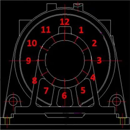 • a) Problem: Koaxialiteten hos det finbearbetade inre hålet i lagersätet på den dubbelstödda maskinbasenheten är instabil. Efter montering kommer det att göra att utloppet av lagerkammaren för hela maskinbasen överskrider toleransen, vilket inte uppfyller ritningskraven.