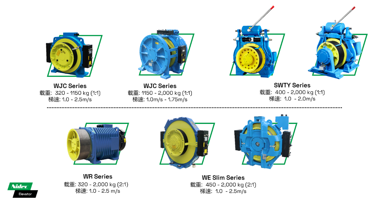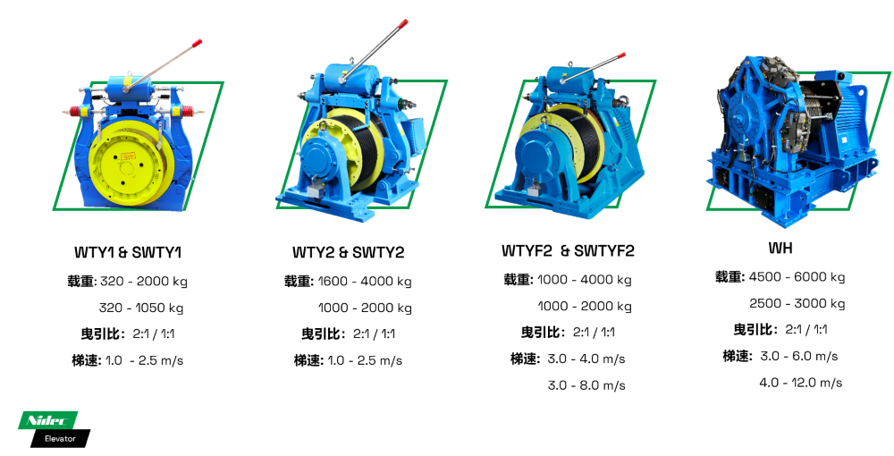 • Med en maximal lastkapacitet på upp till 5500KG och en maximal hisshastighet på 3m/s täcker olika dragkraftsförhållande scheman lastkrav från 2500KG till 5500KG.