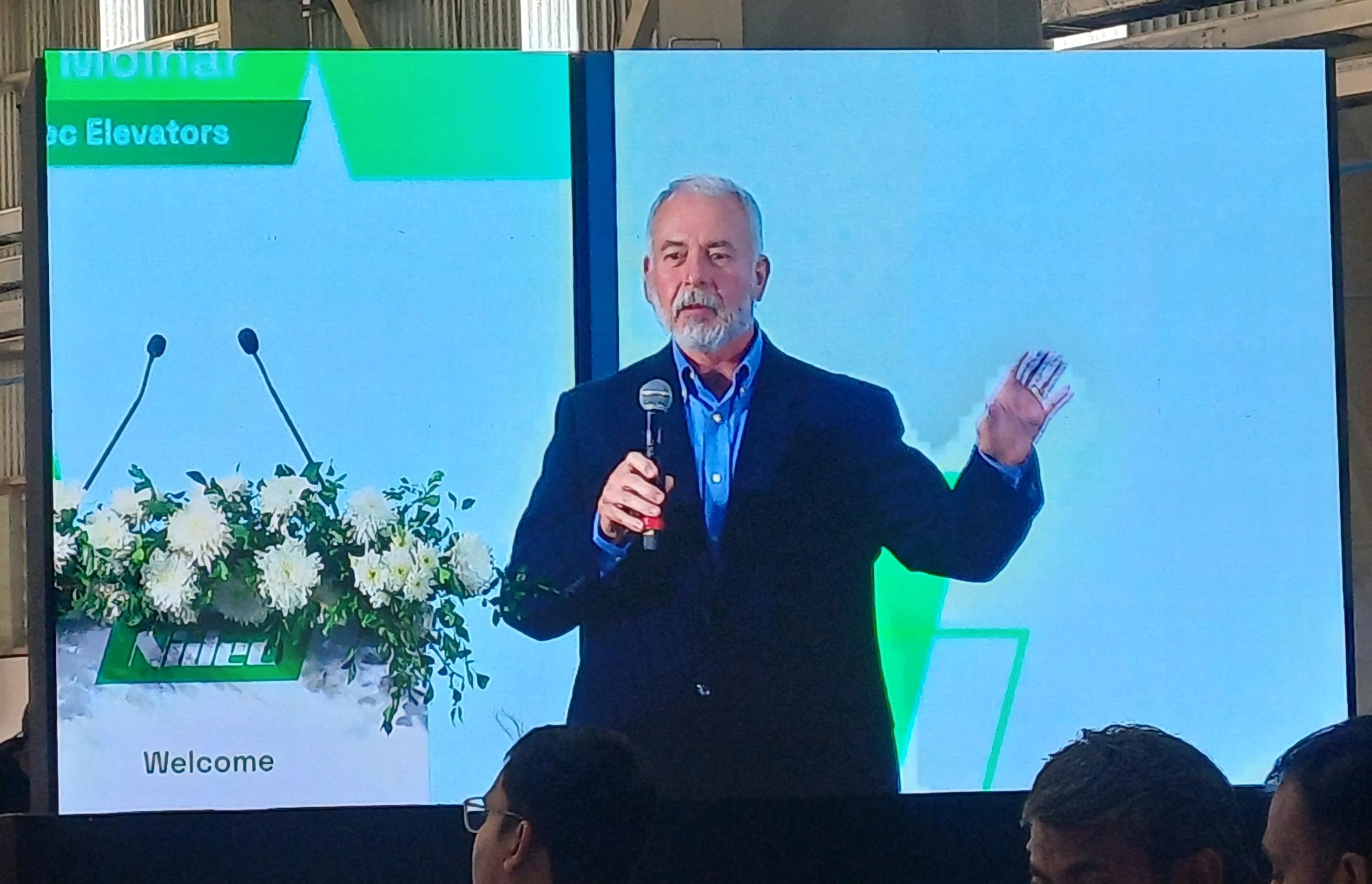 Figur 8 David Molnar, vice ordförande för NIDEC Elevator, talar till ceremonin